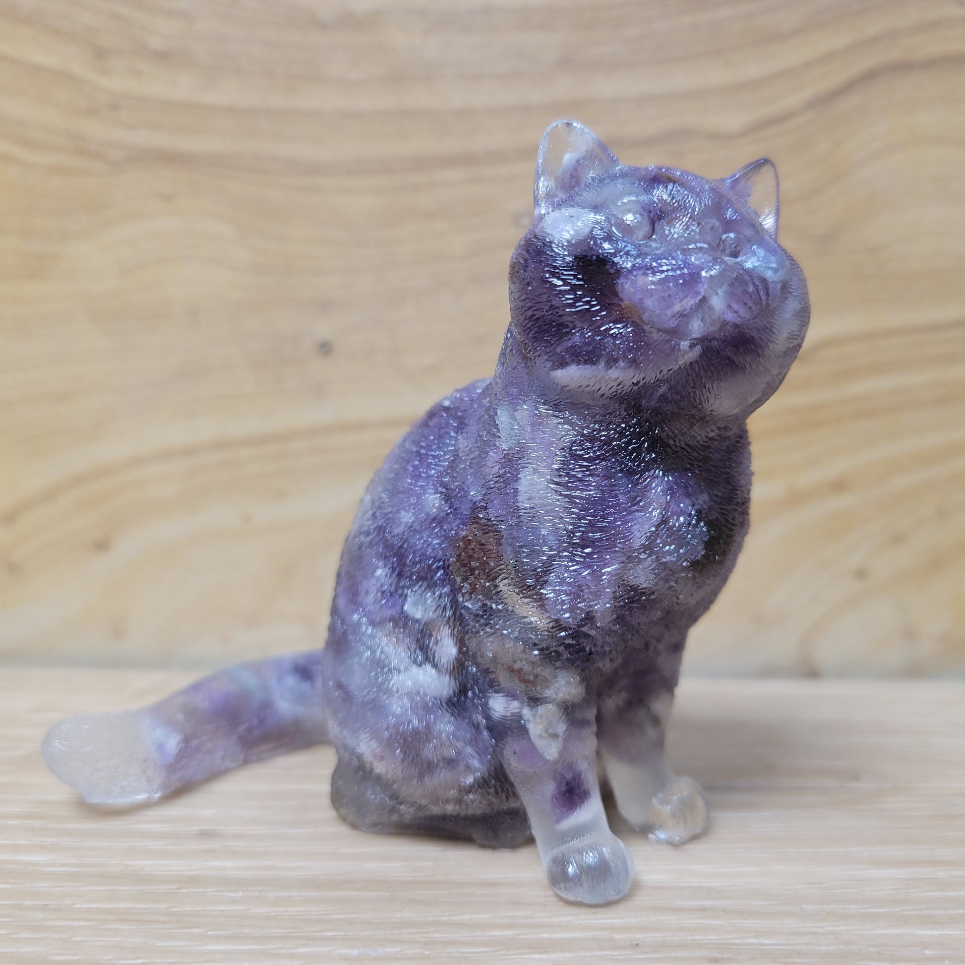 A delightful collection of cat figurines expertly crafted from high-quality resin that contains 100% natural gemstones. Each piece captures the playful and endearing nature of our beloved cats, making them a perfect addition to any cat lovers' collection. Each cat is approximately 3" tall (top to bottom) and 3" wide (including tail measurement)