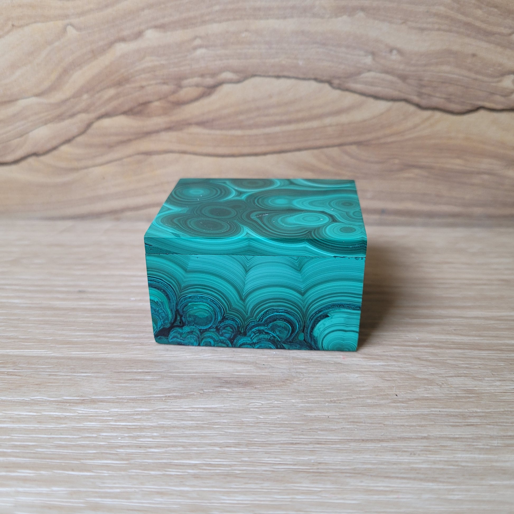 This elegant Malachite jewelry box is crafted from natural Congo Malachite, showcasing its rich green bands and unique patterns. Perfect for storing your favorite treasures, each box is one-of-a-kind, reflecting the beauty and natural variation of the stone.