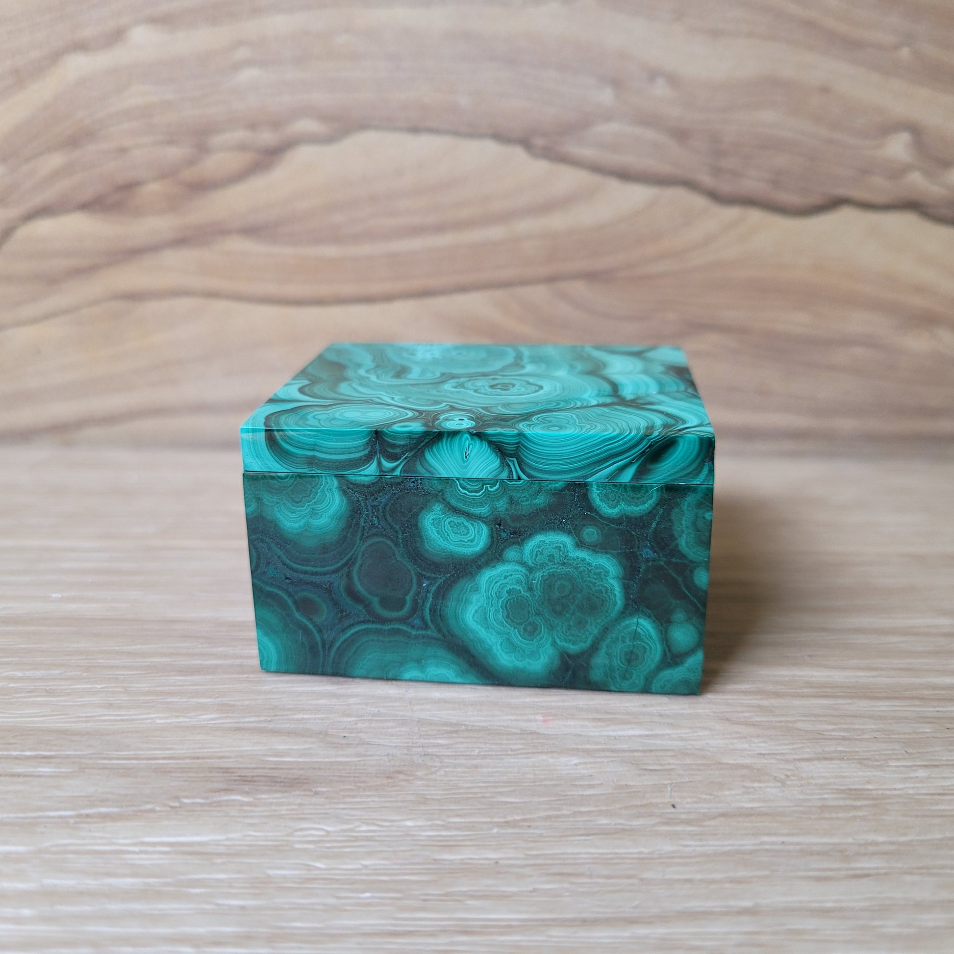 This elegant Malachite jewelry box is crafted from natural Congo Malachite, showcasing its rich green bands and unique patterns. Perfect for storing your favorite treasures, each box is one-of-a-kind, reflecting the beauty and natural variation of the stone.