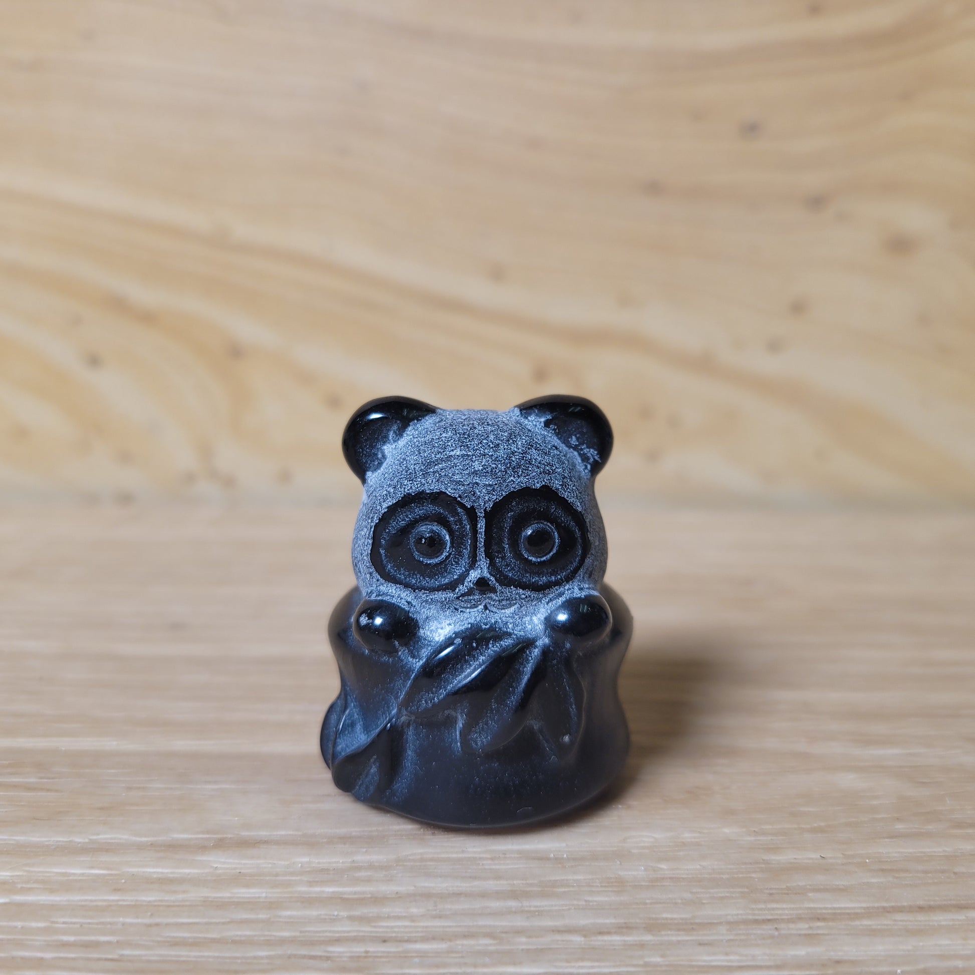 Add charm and energy to your collection with these adorable Obsidian Pandas from Southwest Treasures. Each hand-carved panda is created from stunning Obsidian, with the panda's white coloring achieved through a rough polish technique. Choose from the adorable bamboo bucket design or the full-body panda. Each Panda measures approximately 1.5" tall. Obsidian is known for its protective properties, making this beautiful panda a meaningful addition to any space. Shop now and bring a piece of artistry and energy into your life!