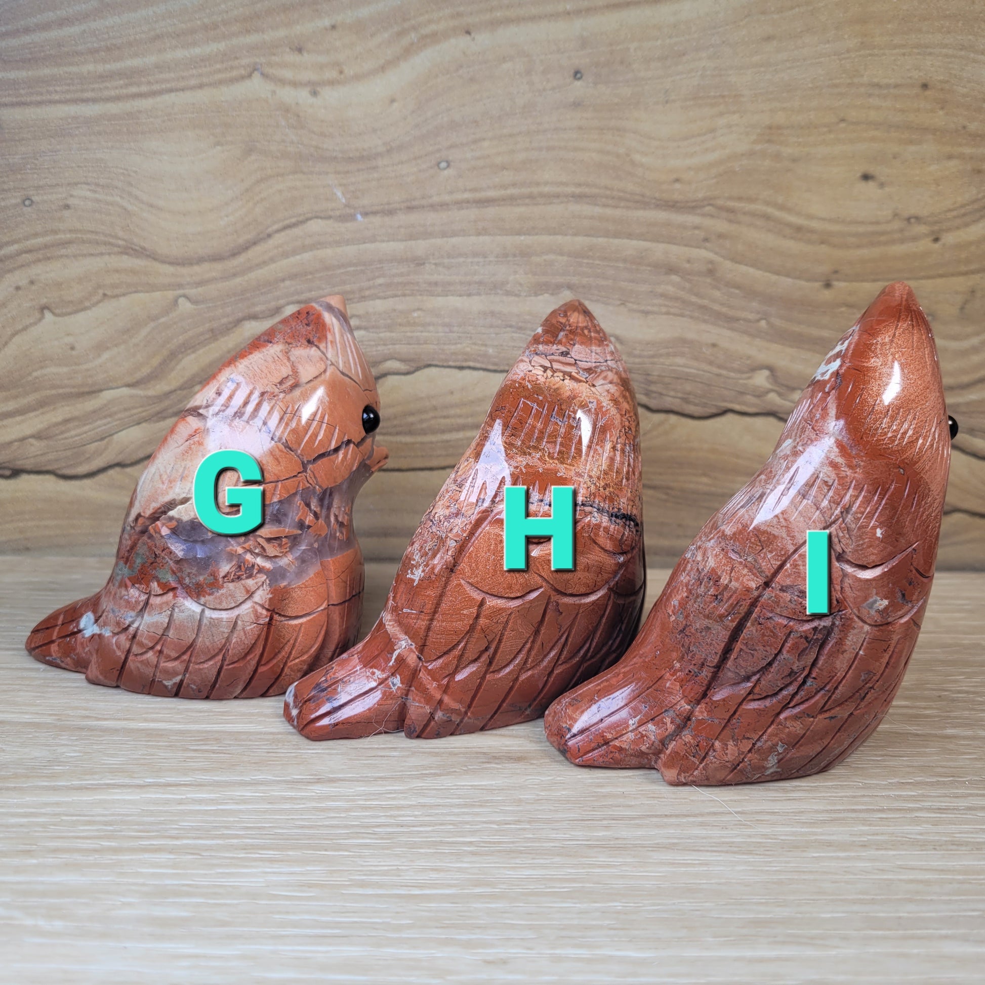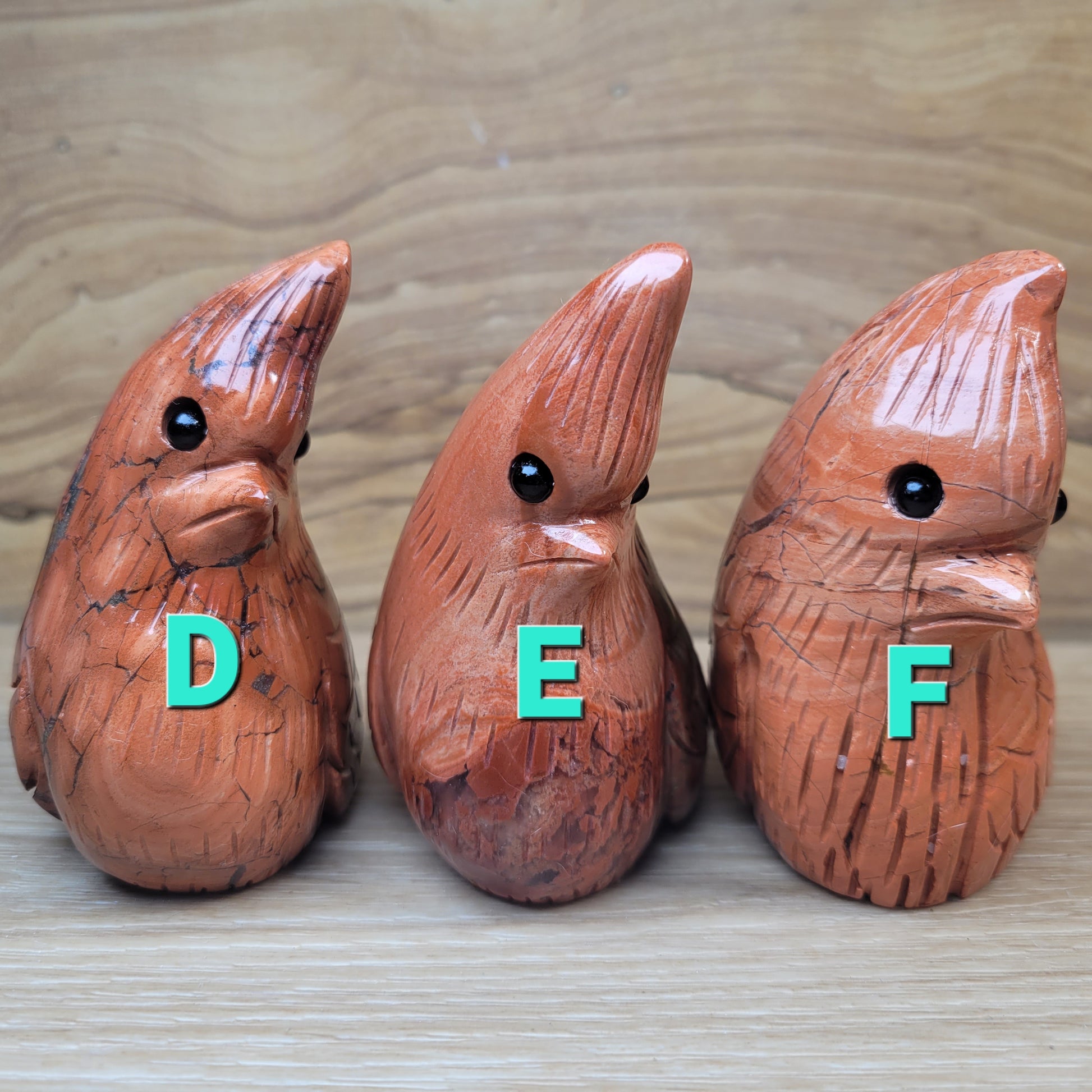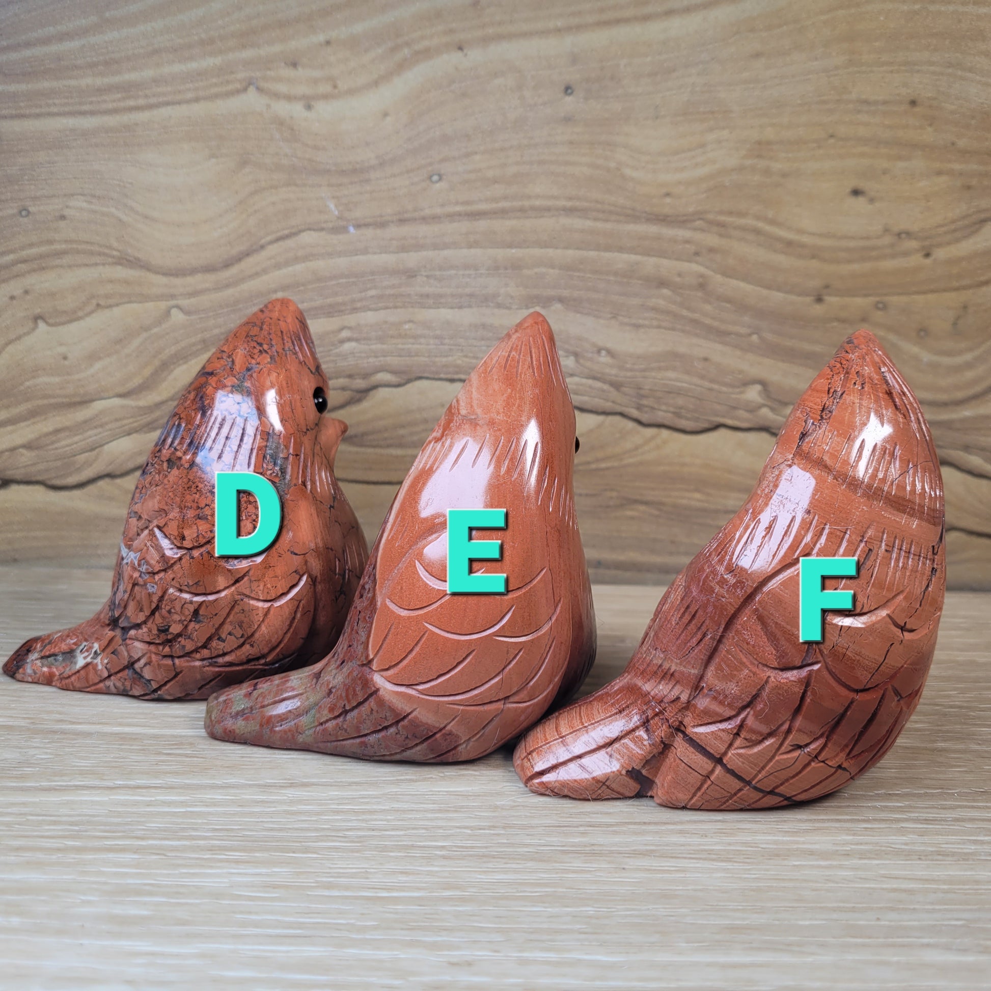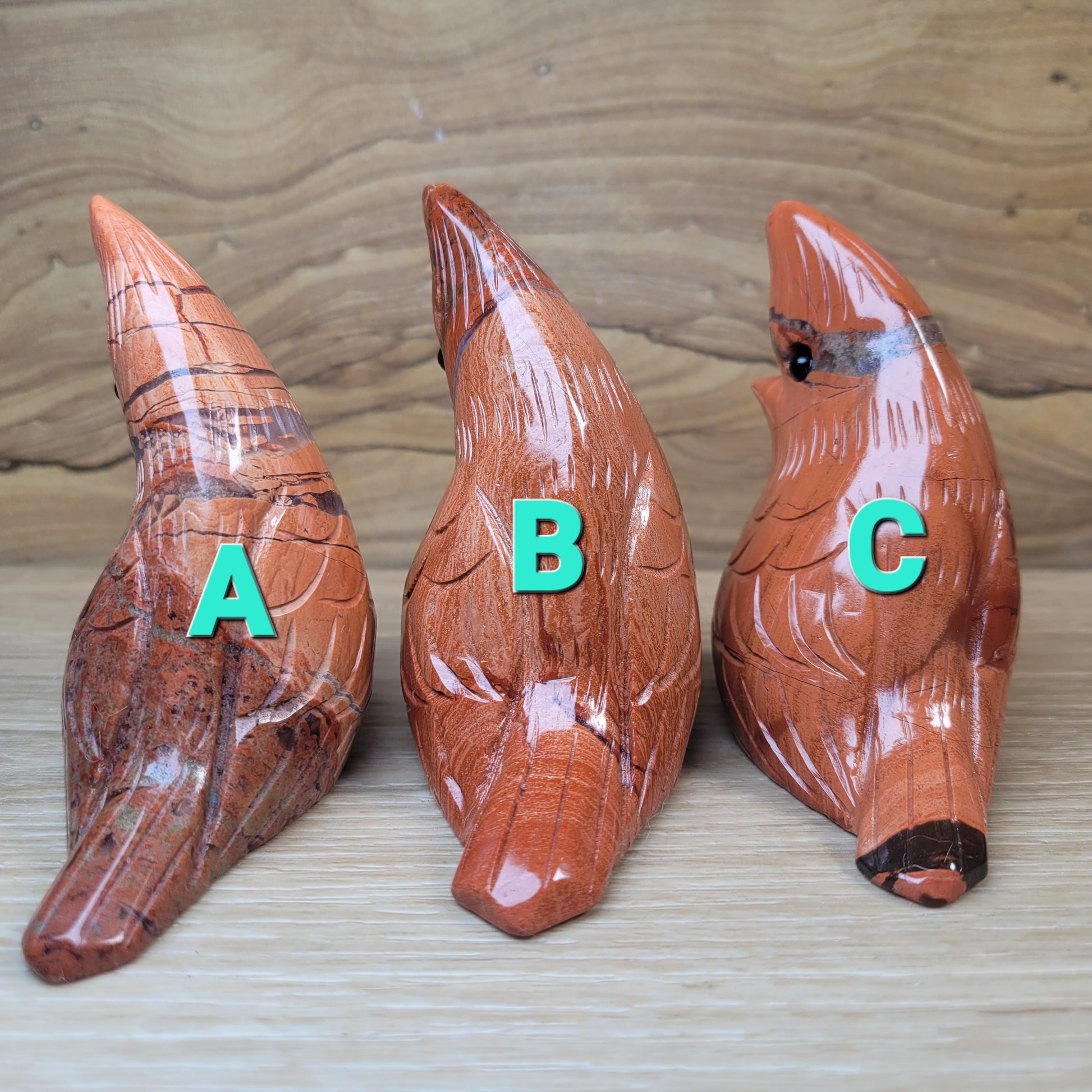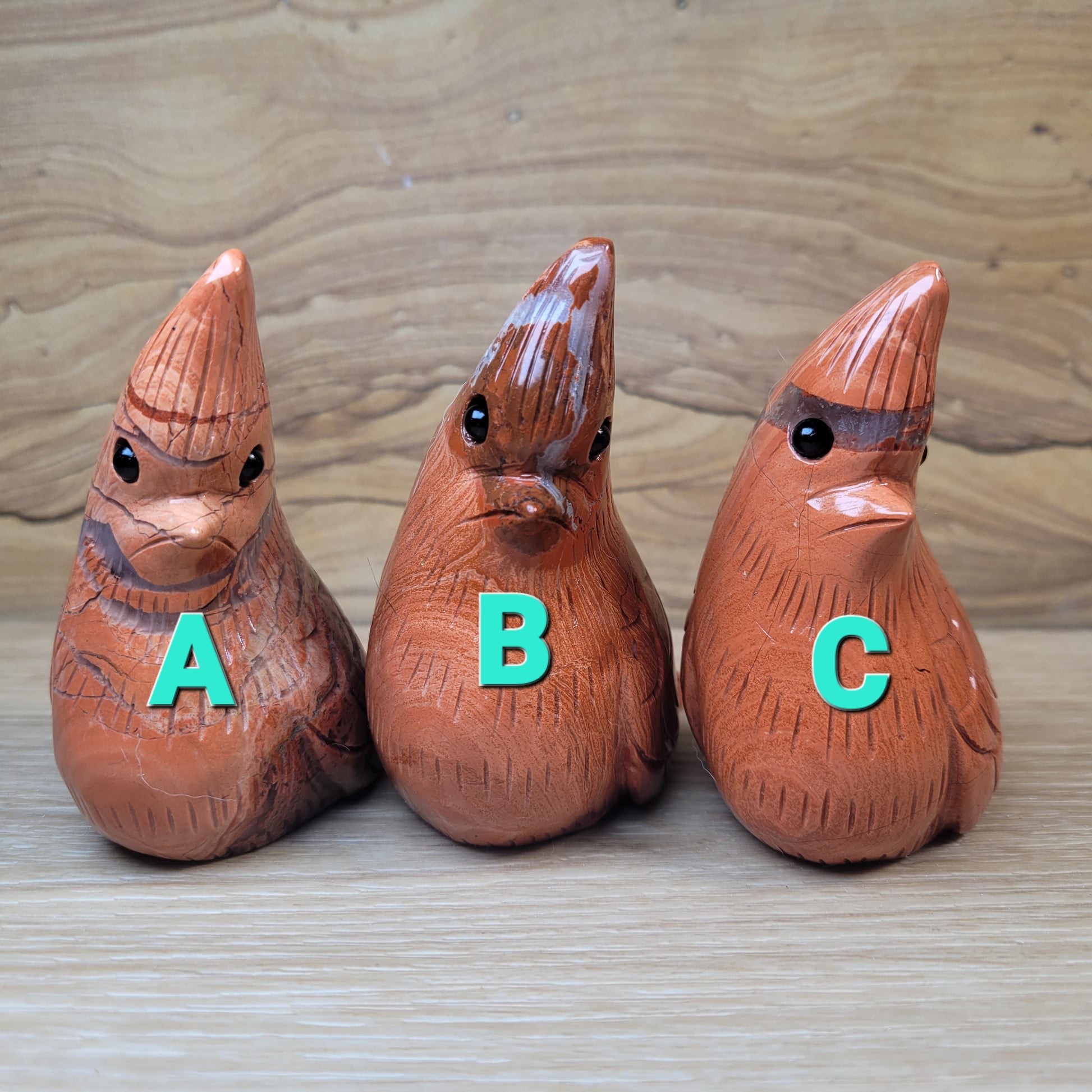 Beautiful hand-carved Cardinals made from Red Jasper. Each piece is unique with its vibrant coloring and black glass eyes. The cardinal shape adds a layer of symbolic depth - representing vitality, enthusiasm, courage, and a spirited connection to life’s energy.