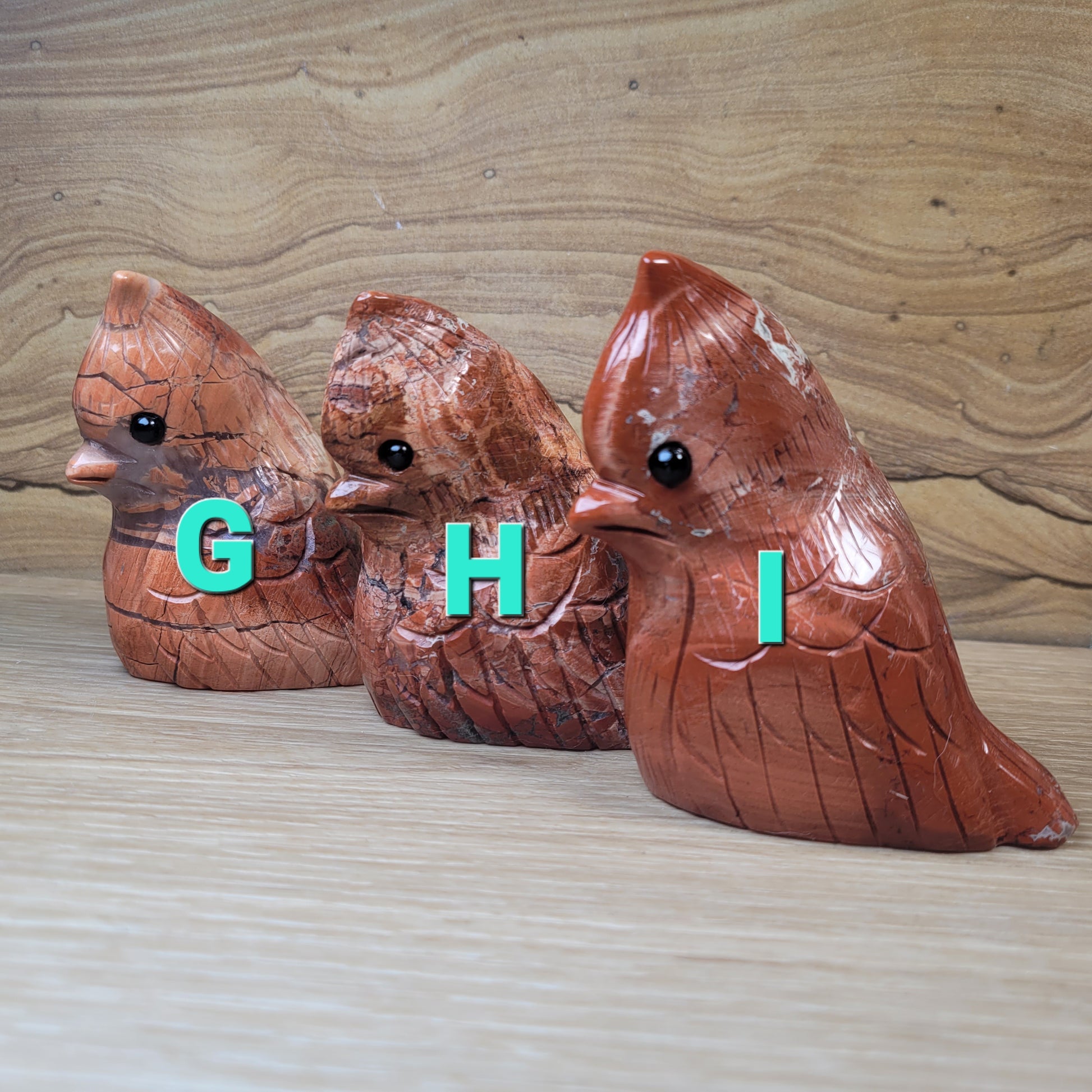 NOTE: You will receive the exact Cardinal as pictured. Each Cardinal is approximately 2.5"- 3.3" tall. Take note that Cardinal J has a slight chip on its beak (price reflects blemish).